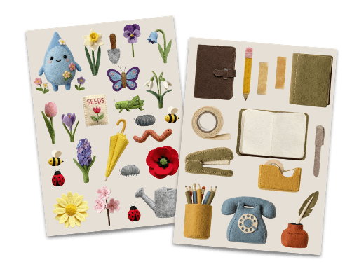 A cozy junk journaling app built for iPad. Collage, layer, and decorate your pages with exclusive Teardrop sticker packs included in your subscription — and it all syncs with your Teardrop Journal entries on your phone.